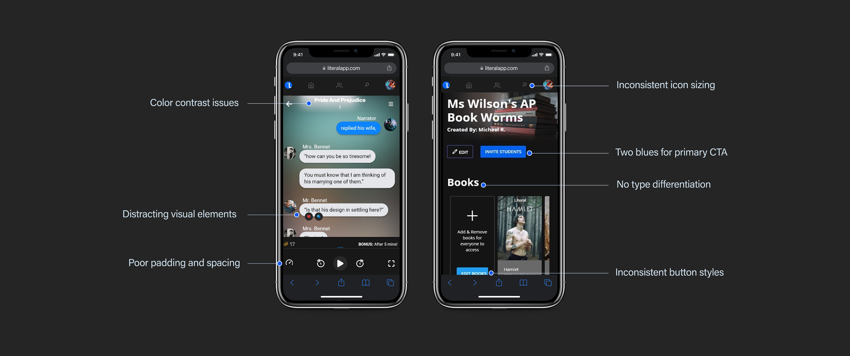 The PWA had been built fast with cluttered layouts, poor contrast, inconsistent components, and a browse experience with no true discovery mechanic. Students weren't disengaged because they didn't want to read — the product made reading feel like work.